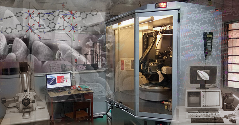| Single Crystal X-Ray Diffractometer | | Bruker; Smart APEX-II | | Mo Tube (X-Ray source); 3 Axes goniometer; 512px X 512 px CCD camera (detector) |